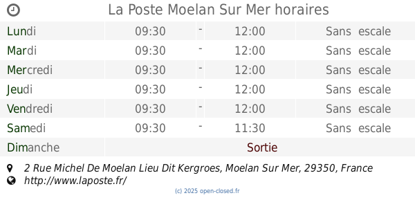 It is also possible to : Modifier ces HEURES D'OUVERTURE of Branche La Poste Dans Moelan Sur Mer, 2 Rue Michel De Moelan Lieu Dit Kergroes,